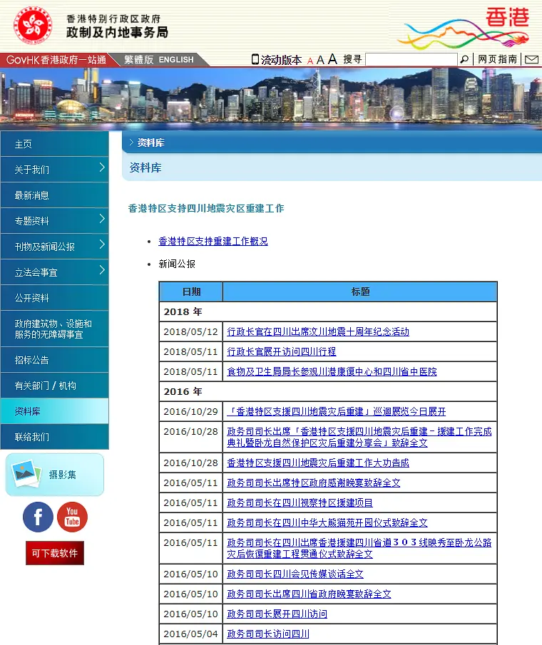 还有一个地址,可当作大记事一并服用。 https://www.cmab.gov.hk/gb/archives/recon_sichuan.htm