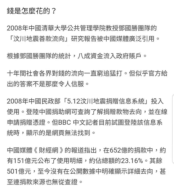 【辟谣贴 】汶川地震收到的HK善款,都有好好利用!HK网站有明细!