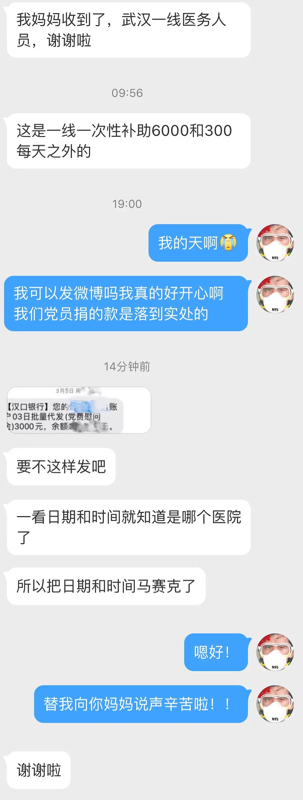之前党员捐的款,原来都作为“慰问金”发放给一线人员啦