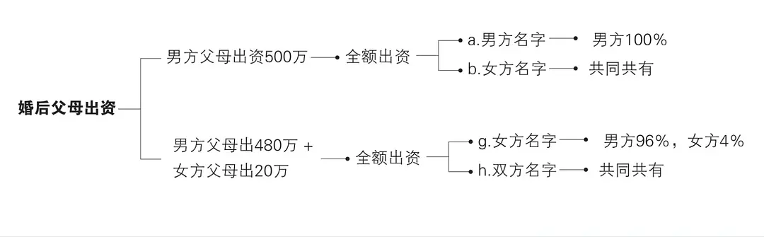 2..婚后男方父母出资购房,若全额出资,写女方名字,起到的是跟写双方名字一样的法律效果——属于夫妻共同财产。