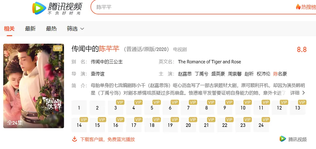 它是腾讯视频的海外版,有些剧在海外版是不需要会员就能看的,而且这个网址看视频还没有N长的广告,真的是美滋滋。我拿陈芊芊举个例子。
